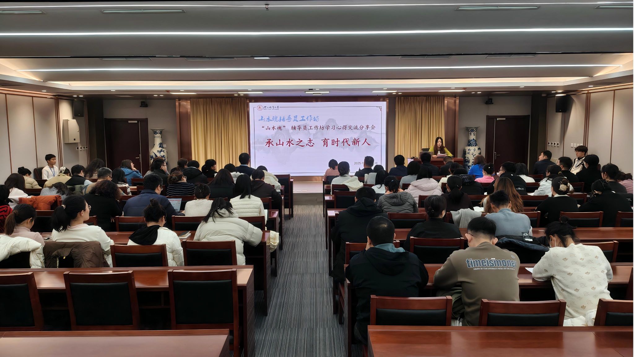 自2025年10月以来,“山水魂”辅导员工作坊紧扣立德树人根本任务,陆续推出九期高质量培训,覆盖“一站式”学生社区建设、民族团结教育、公寓安全管理、数字思政、学业帮扶、心理危机干预、课题申报、“五力并举”育人实践等核心领域,通过专题讲座、案例研讨、技能实操等多元形式,为辅导员搭建了系统学习、深度交流的专业成长平台。此次心得分享会作为系列培训的重要收尾环节,精选9位来自不同学院的辅导员代表,结合培训所学与工作实践,分享了兼具理论深度与实践温度的育人感悟。